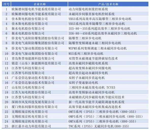 附件 1:全国节能降碳示范电机类产品 / 技术名单
