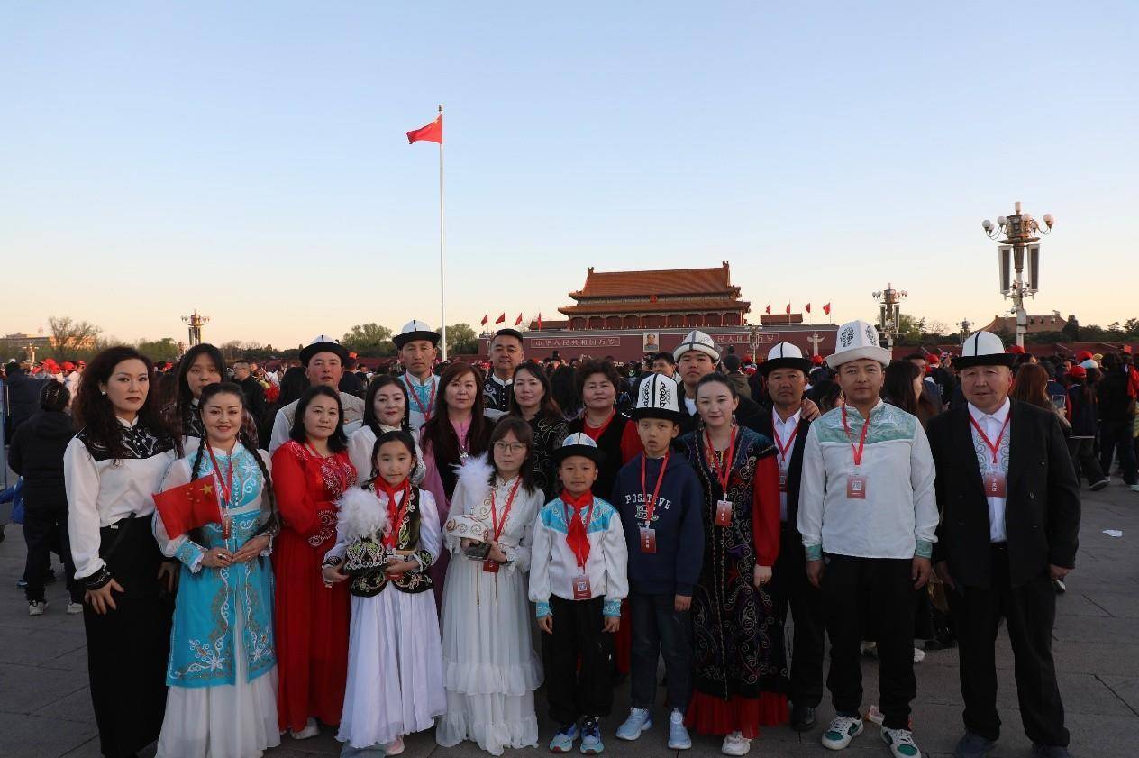 阿合奇“最美家庭”代表在天安门广场观看升旗仪式。于赛克·阿布力 摄