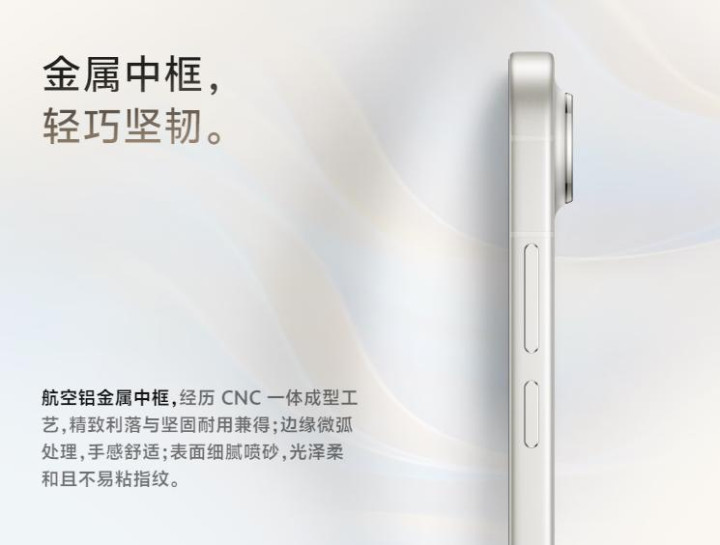 这款新机在影像系统的造型设计上别出心裁,这次创新性地采用横向的椭圆形结构,显著减小了镜头模组体积,看起来很有一体感和精致感,官方对外的称呼是“梦幻浮空岛镜组”。值得一提的是,它的中框设计同样很有意思,航空级铝金属经过特殊工艺处理,在保留金属质感的同时又避免冬季使用时冰手的问题。此外,它还是一款小巧轻薄的手机,屏幕尺寸仅有6.31英寸,机身控制在了191g,7.99mm,整体握持体验十分出色。